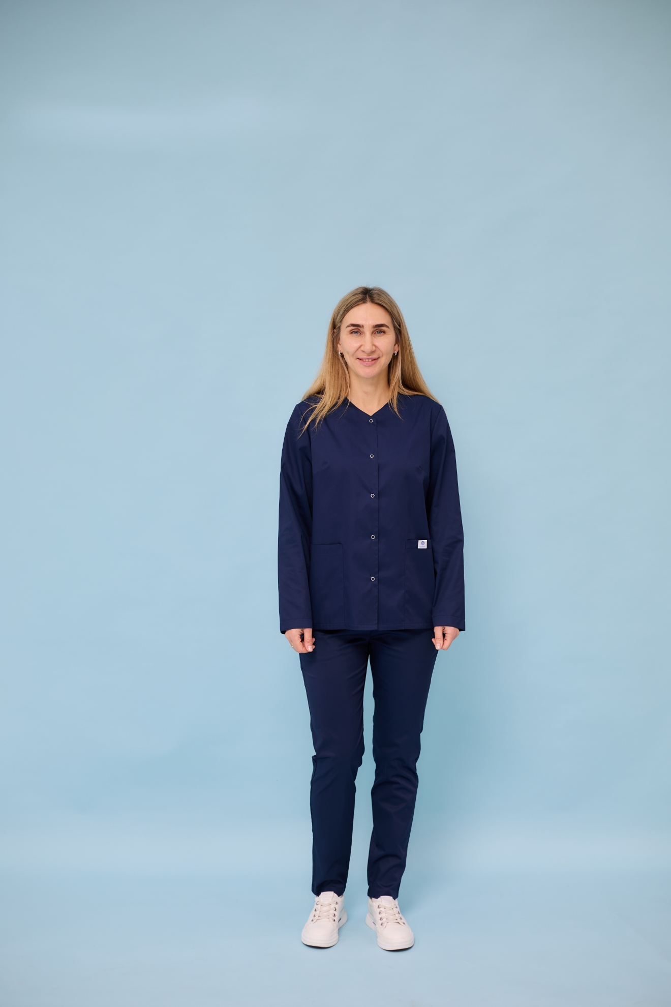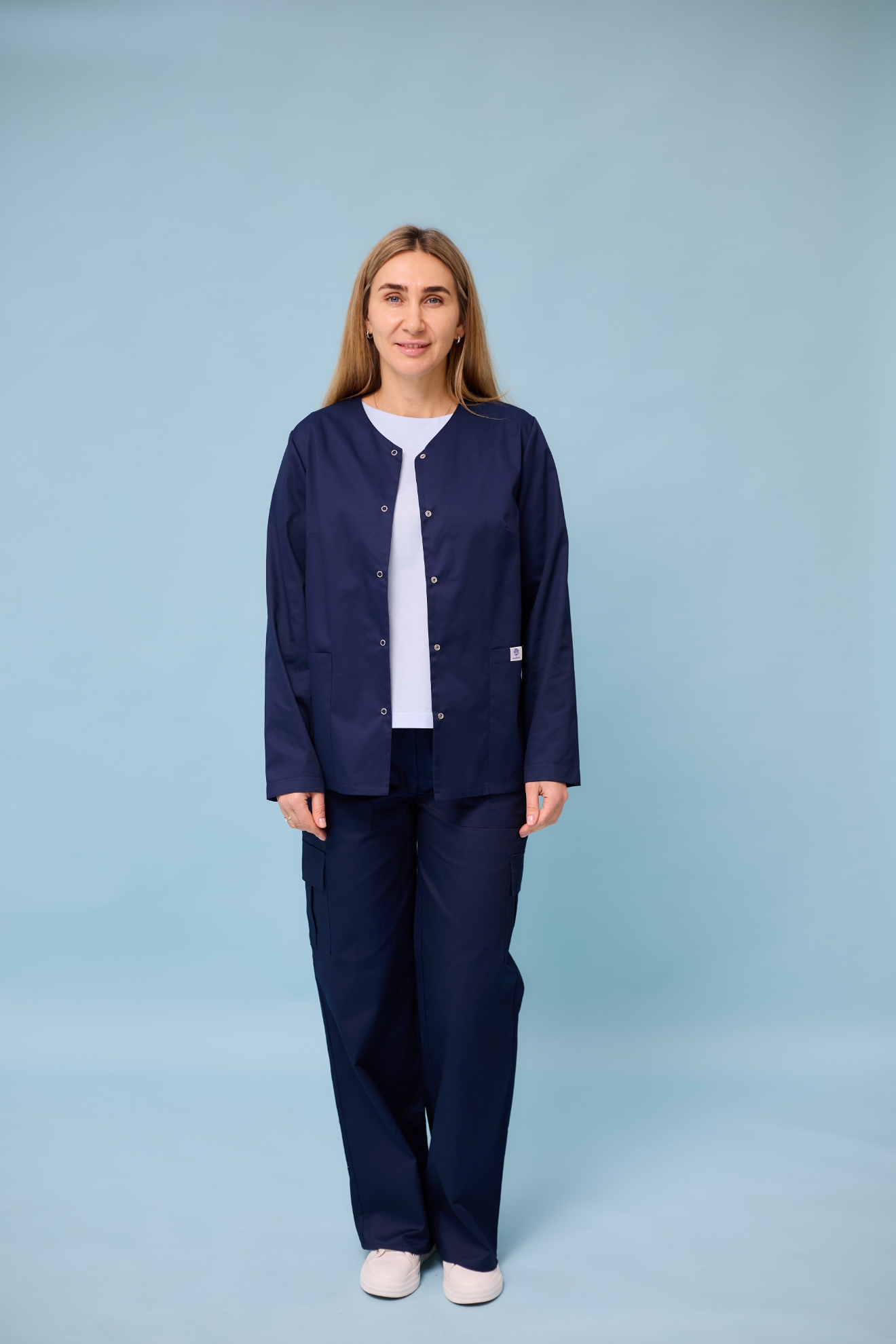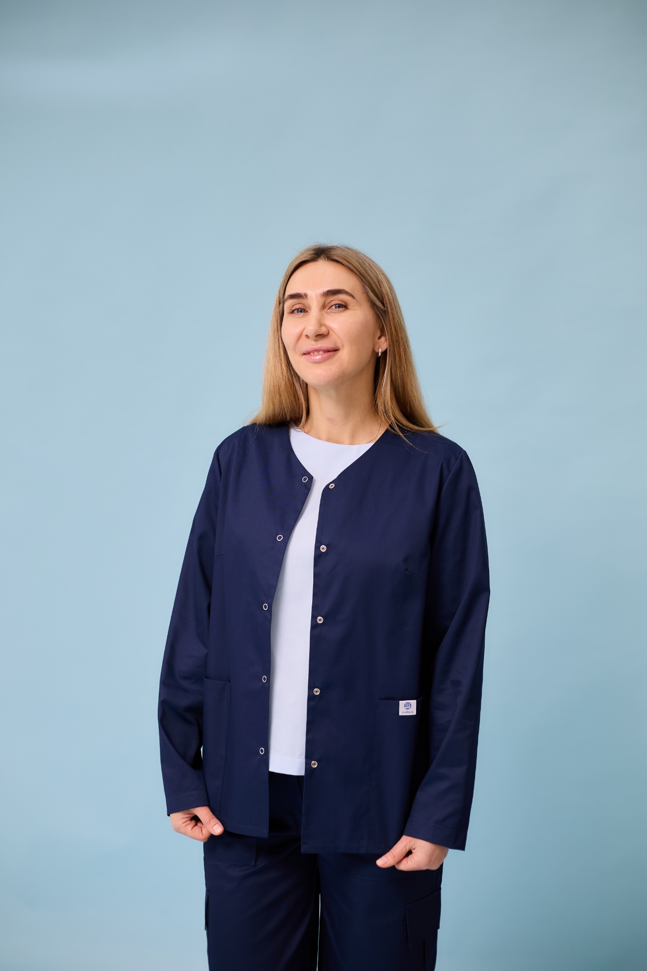 Жіноча медична куртка із довгим рукавом "Кері". Колір Темно-синій