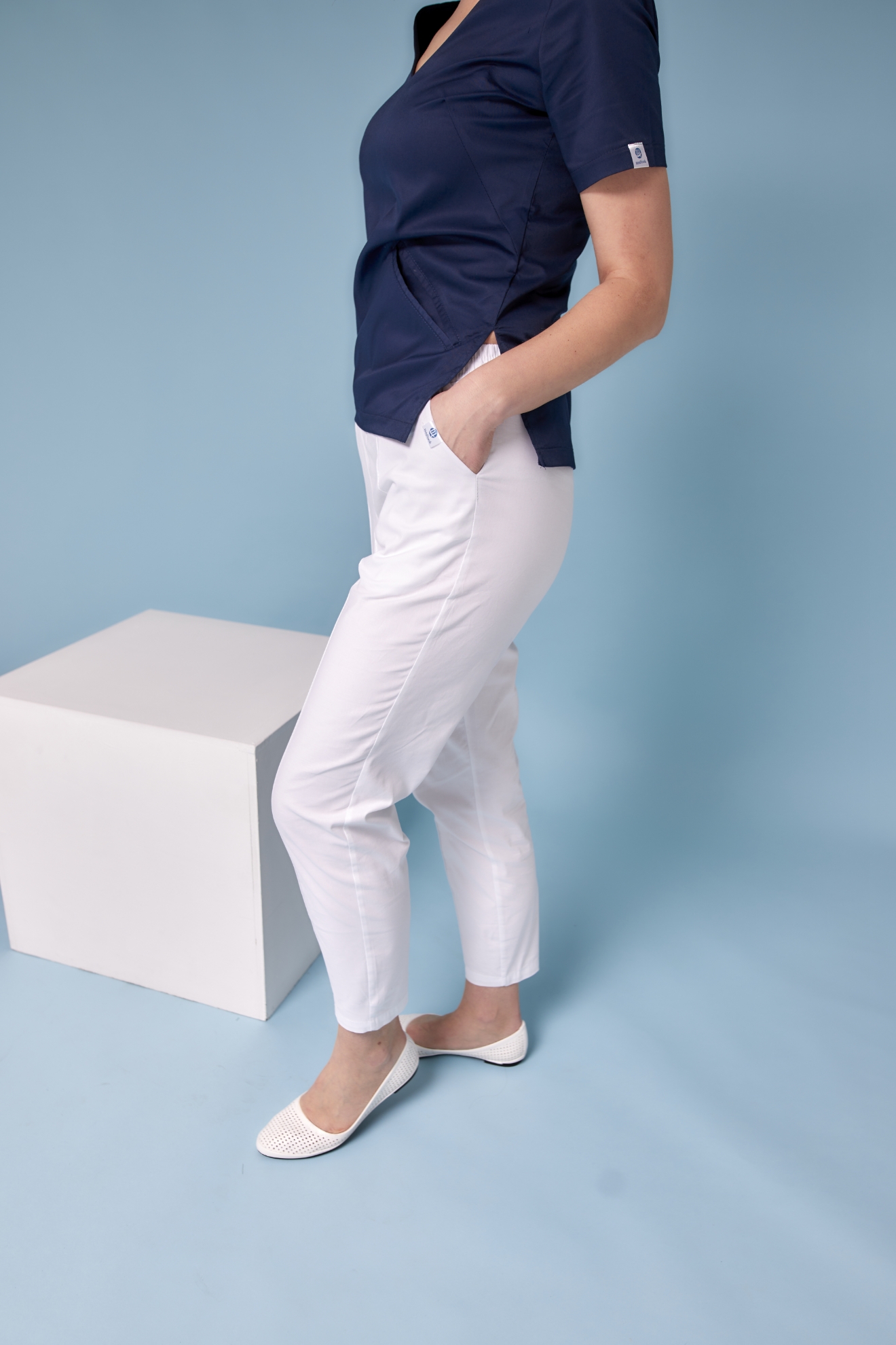 Медичні жіночі штани із щільноі саржі "МОМ". Колір Білий.