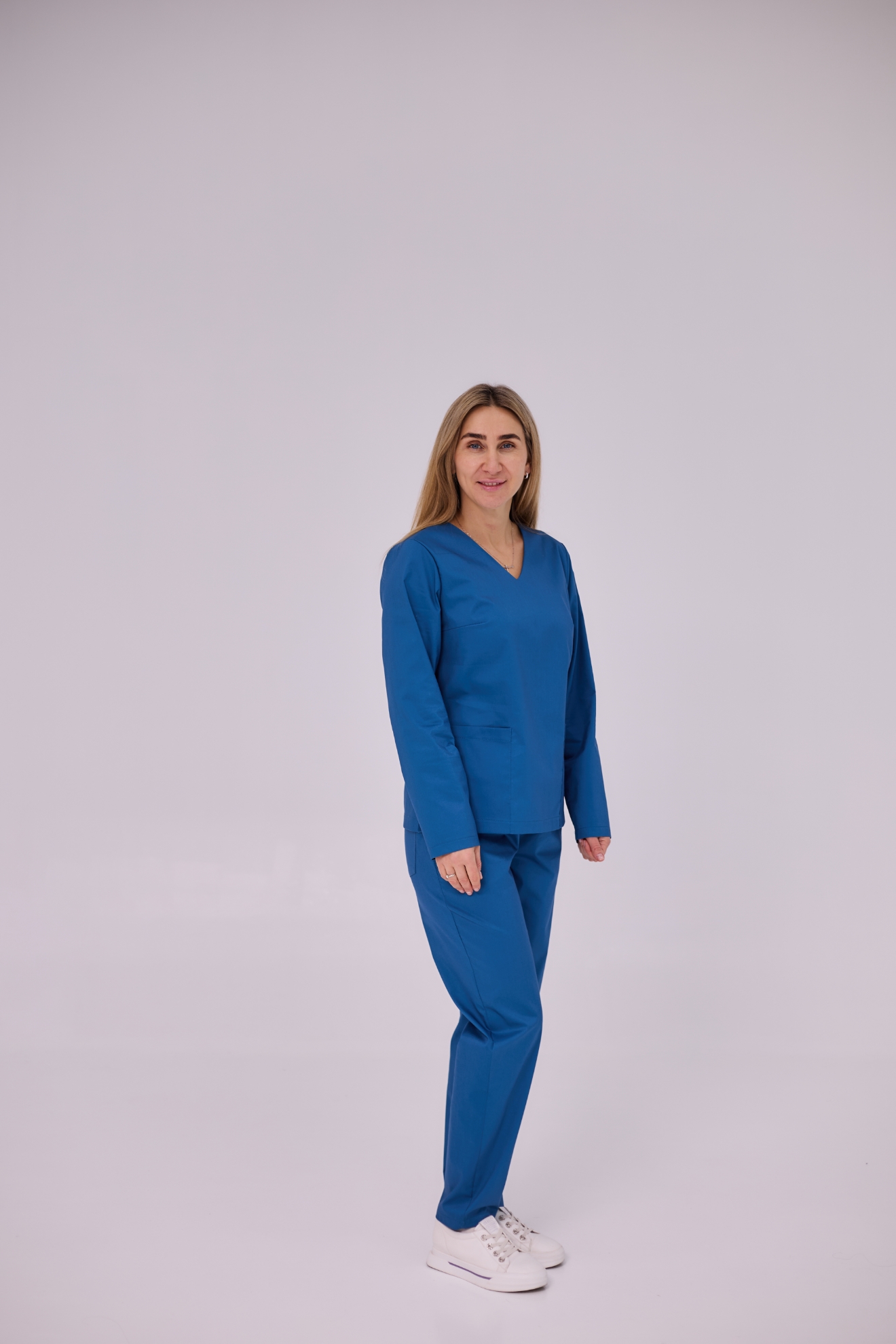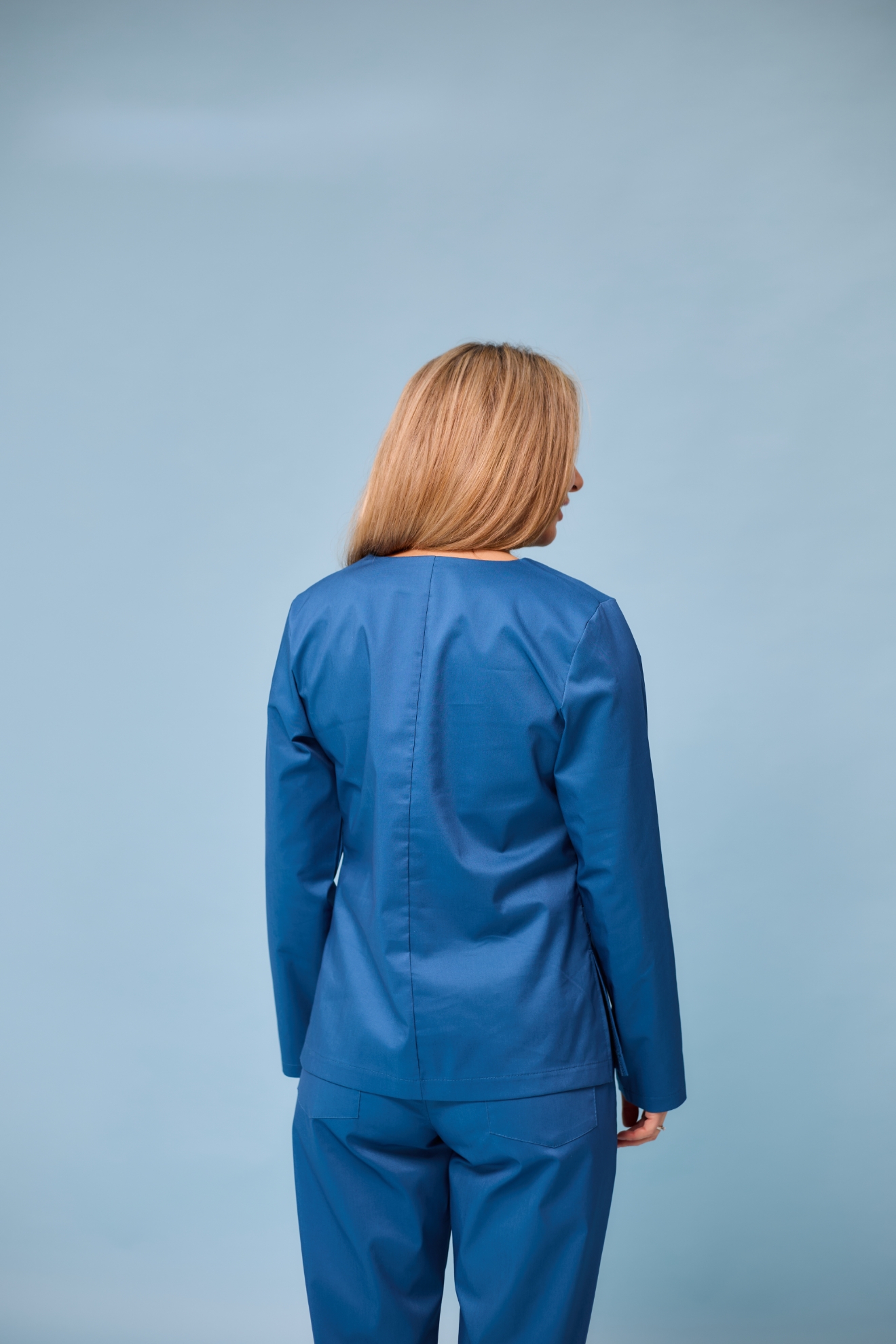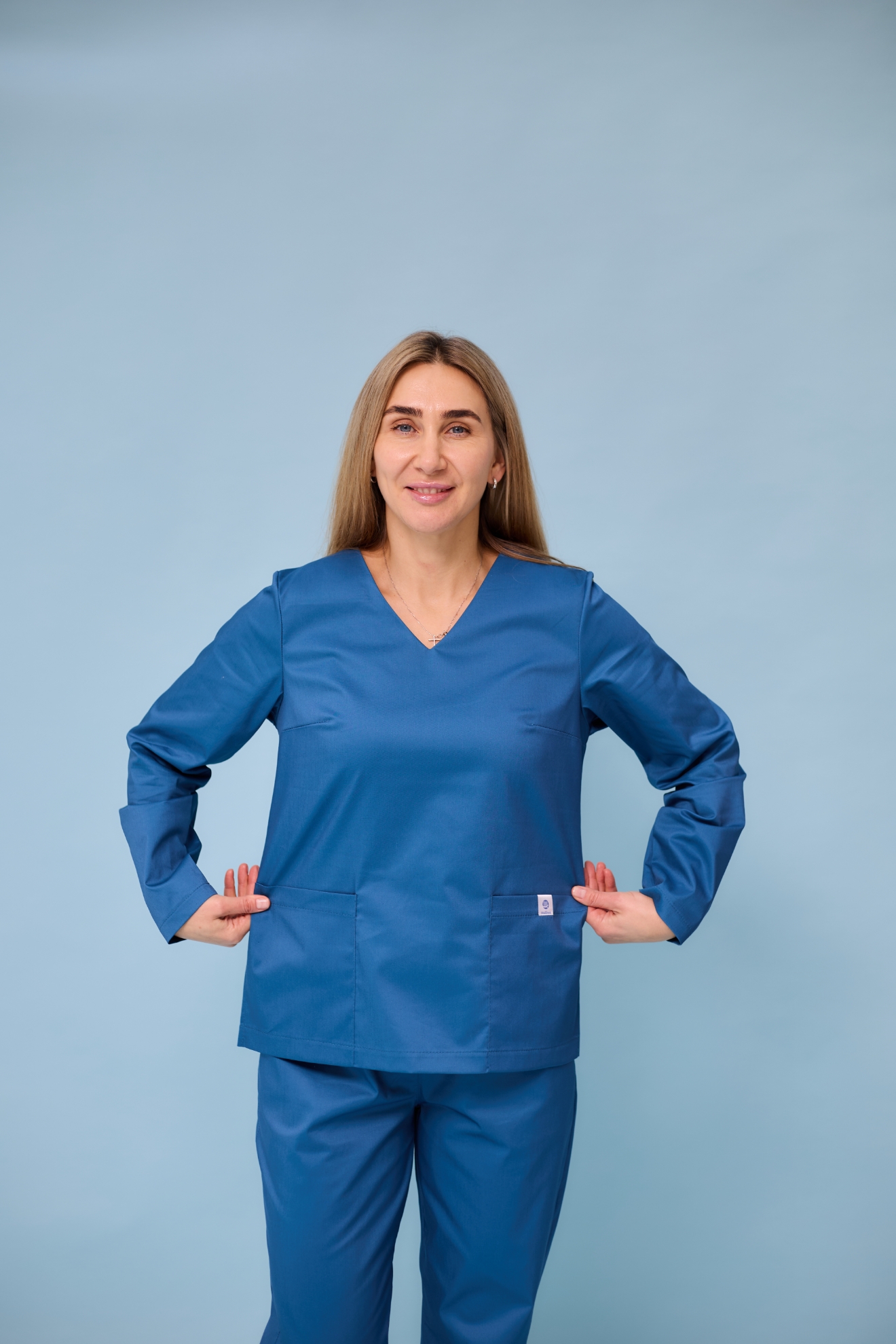 Медичний жіночий топ із довгим рукавом "Лейла" із стрейч-котону. Колір Океанічний.