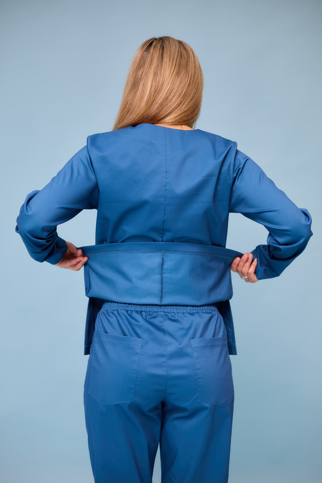 Медичний жіночий топ із довгим рукавом "Лейла" із стрейч-котону. Колір Океанічний.