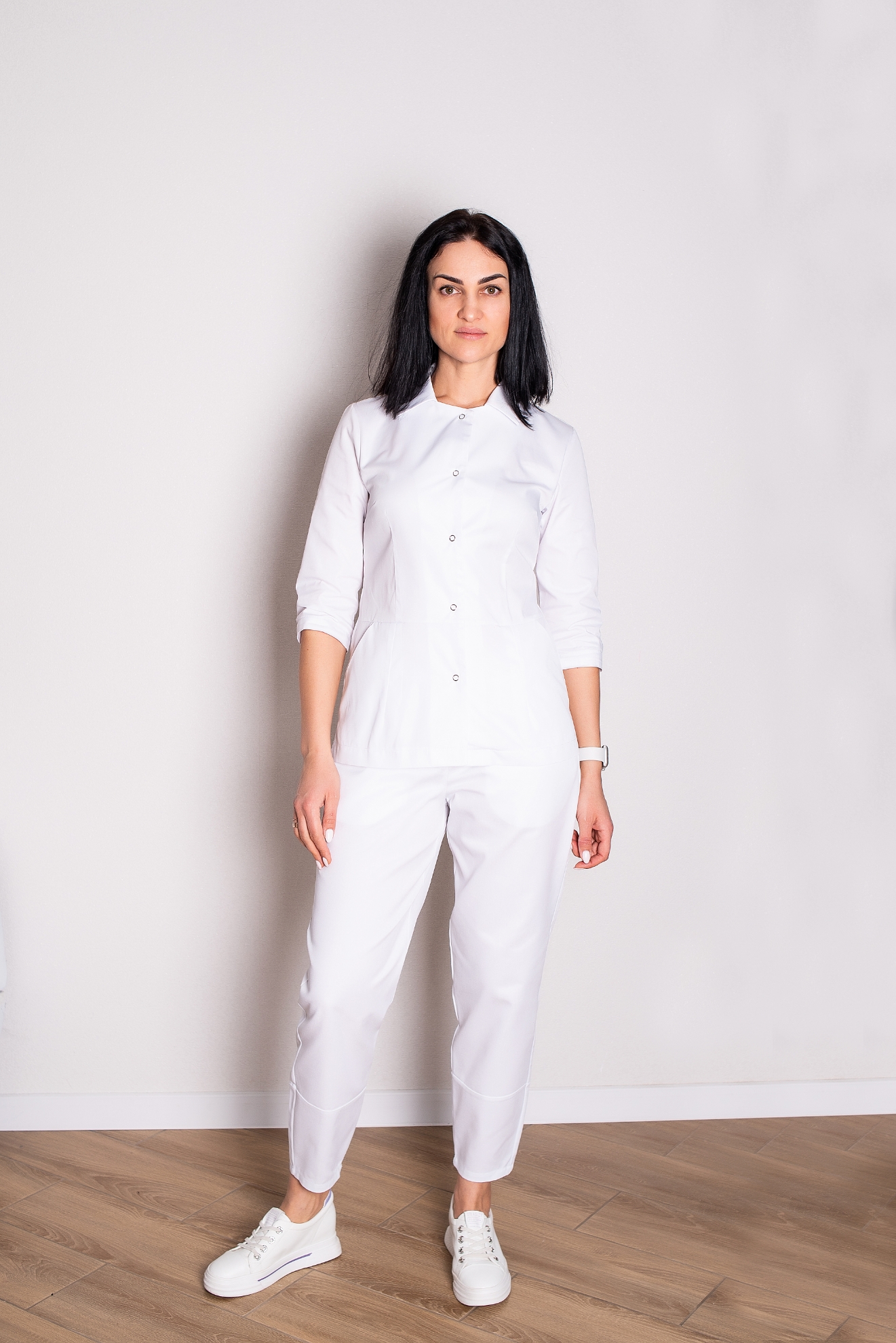 Медична жіноча куртка "Стелла" . Біла. Рукав 3/4.