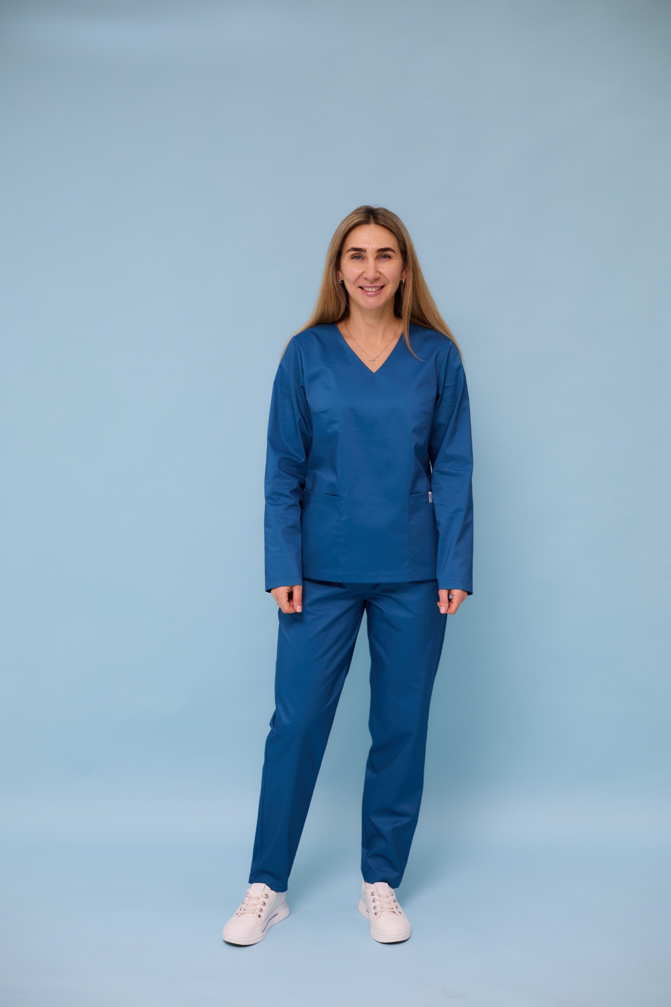 Медичний жіночий костюм із довгим рукавом "Лейла" із стрейч-котону. Колір Океанічний.